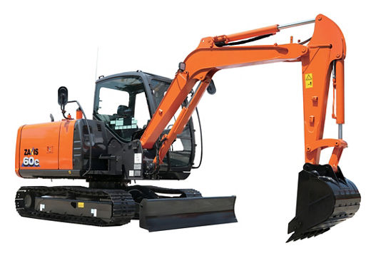 Máy đào bánh xích mini Hitachi ZX60C-6A, trọng lượng 5,4 tấn, công suất động cơ 29,6 kW, dung tích gầu 0,19 m3.